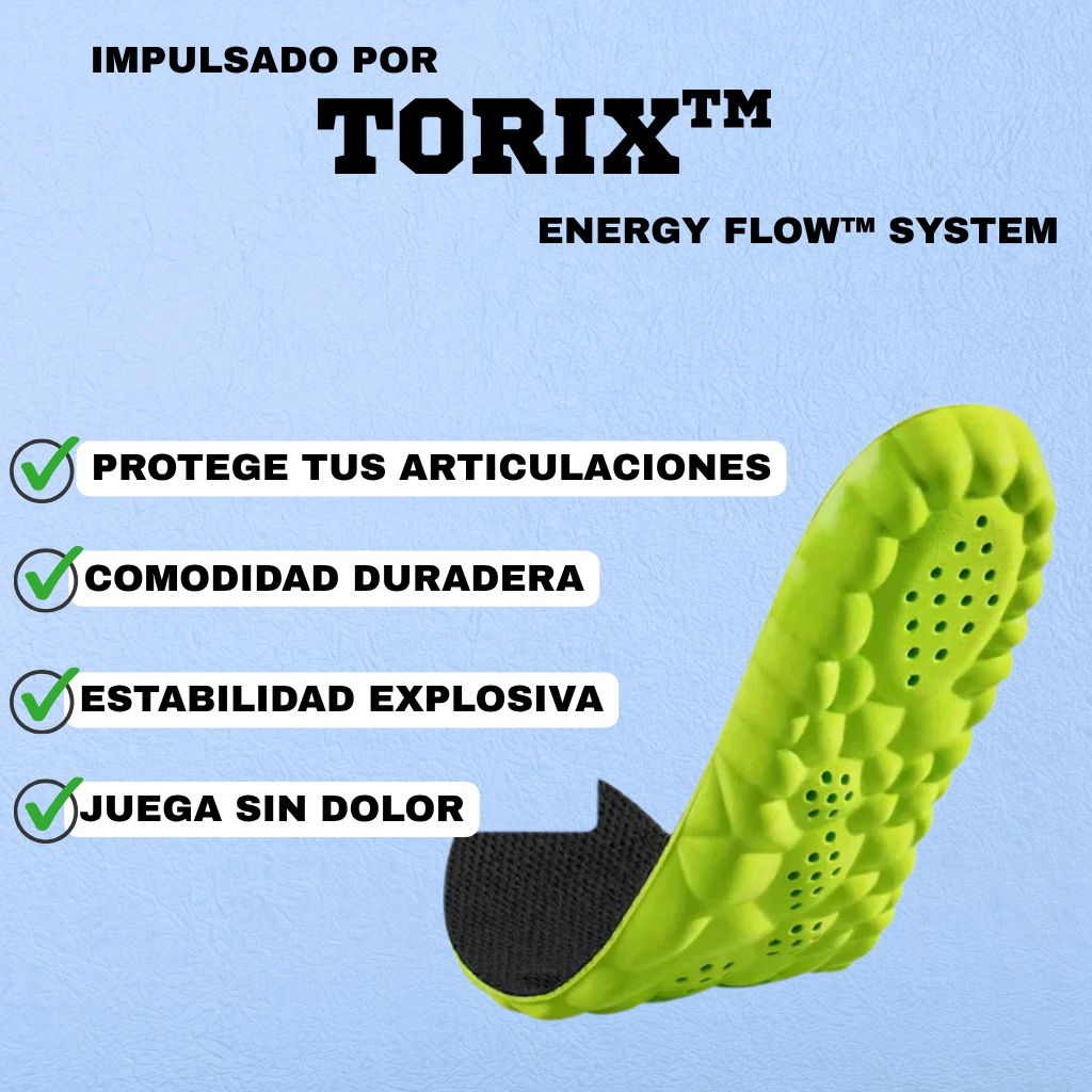 Se acabaron los deslizamientos y torceduras. Las plantillas Torix™ estabilizan cada movimiento para apoyos sólidos y precisos, sin dolor.